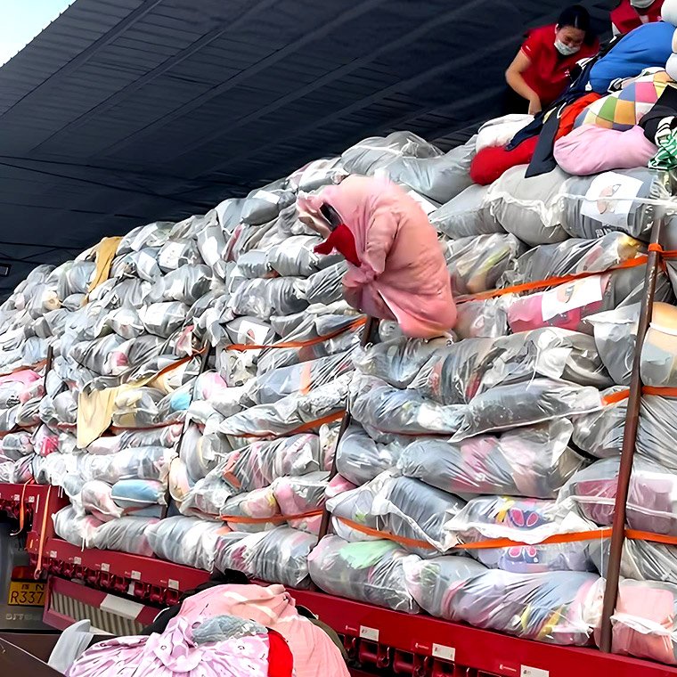 A container of second – hand used clothes purchased from elsewhere is being unloaded from the vehicle